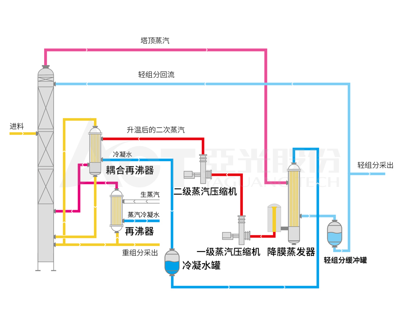 二次蒸汽不斷壓縮循環作為加熱熱源