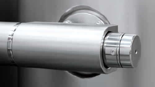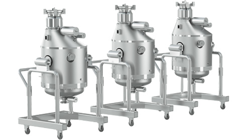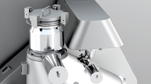 自動密閉出料裝置 俗稱"象鼻子出料裝置",能夠有效避免膠塞出料時與外界接觸造成污染; 出料系統可進行CIP和